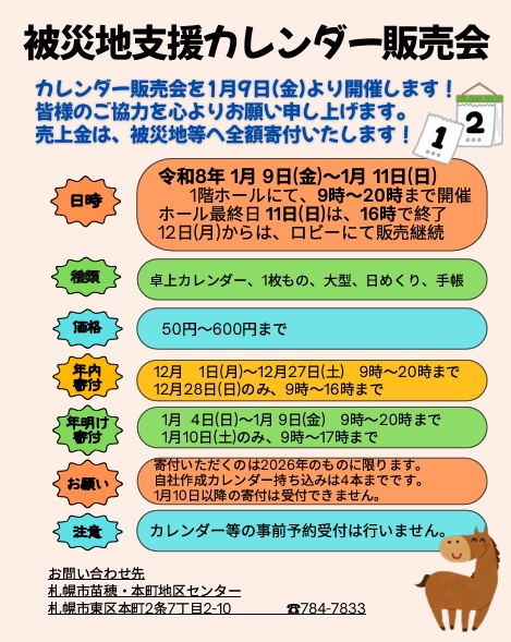 ※会場整理の都合上、1月10日以降の寄付はお断りさせていただきます。