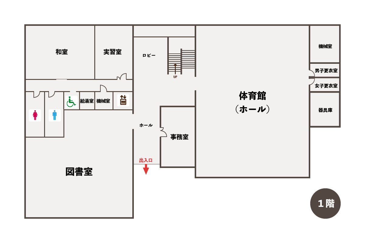 | 施設関連 | 身障者用のトイレ(1階)・専用駐車場(1台分)・エレベーターが設置されております。 ※ 一般駐車場(19台)が狭いため、お車でのご来館はできるだけご遠慮下さい。 |