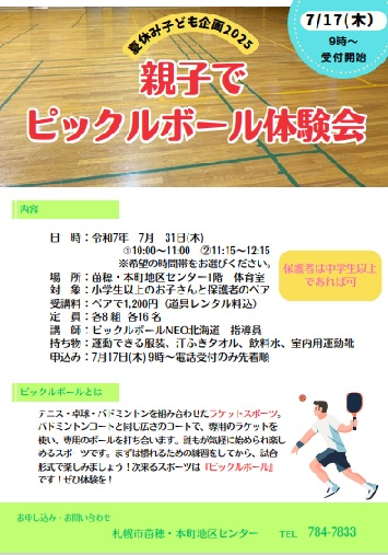 ☆7月17日受付開始★親子でピックルボール体験会‼