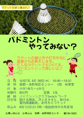 申込方法 8月4日(月)9時~電話受付のみ先着順