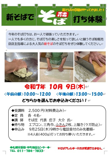 ☆9月25日受付開始★新そばでそば打ち体験‼