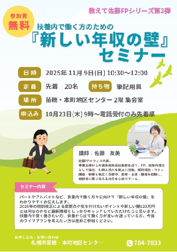 ☆10月23日受付開始★新しい年収の壁セミナー‼