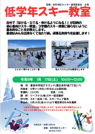 この冬もやりますよ~初めてさん!苦手さん!みんな一緒に『はく・立つ・歩く』の低学年のスキー教室!